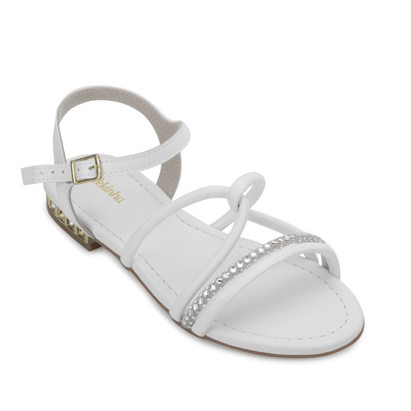 A sandália Molekinha é perfeita para quem busca conforto e estilo em um só calçado. Com design moderno e acabamento de qualidade, ela é ideal para compor looks casuais ou até mesmo para ocasiões especiais. No cabedal possui tiras cruzadas e outra com aplicações de strass, trazendo delicadeza a sandália. Seu fechamento em fivela garante maior segurança e ajuste aos pés. Sua palmilha macia proporciona conforto e bem-estar, o solado possui mini salto com detalhe dourado e aplicações de strass. Adquira já a sua!