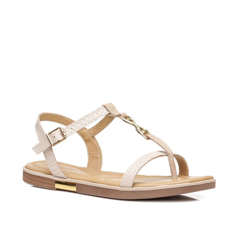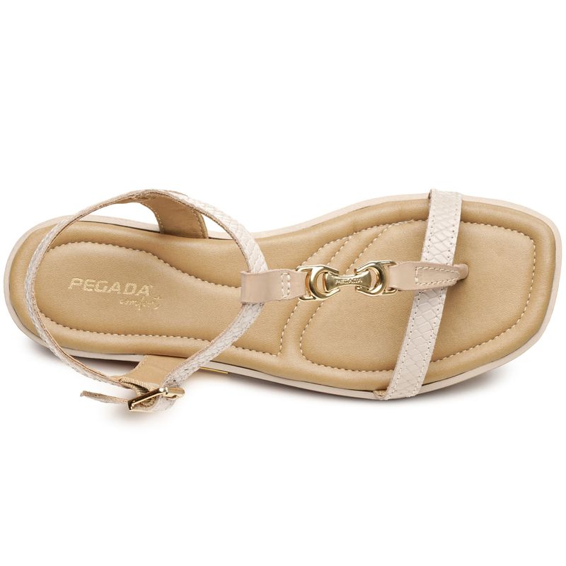 Sandália Pegada Feminina em Couro Creme 233553-02