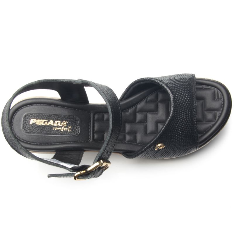Essa sandália em couro preto é super confortável e estilosa. Os calçados Pegada são produzidos em couro, matéria prima de alta qualidade, que oferece maciez, resistência e durabilidade. O solado é leve e flexível, com um saltinho estilo anabela de 6 cm. Já a palmilha é super macia e acompanha o formato dos pés. O modelo ainda conta com uma fivela que facilita o ajuste nos pés. Tudo isso proporciona um extremo conforto, sem falar no estilo que permite criar vários looks incríveis para o verão.