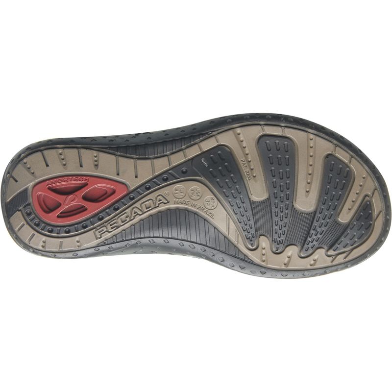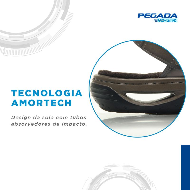 Com cabedal em couro, matéria-prima essencial na fabricação de um produto de qualidade superior. O forro em tecido espumado garante alto conforto, além de possuir alta absorção de suor, mantendo o pé seco e arejado. O solado é leve e flexível, possuindo operação de blaque, que confere maior resistência, e com sistema de amortecimento AMORTECH, com tubos absorvedores de impacto. A palmilha com EVA dublado em microfibra oferece mais conforto ao pé, absorvendo o suor. O modelo ainda possui tiras de tiras autocolantes ajustáveis no peito do pé, que permite um ajuste perfeito do calçado em seu pé e conta ainda com uma tira versátil que torna o modelo dois em um: uma sandália que vira chinelo.