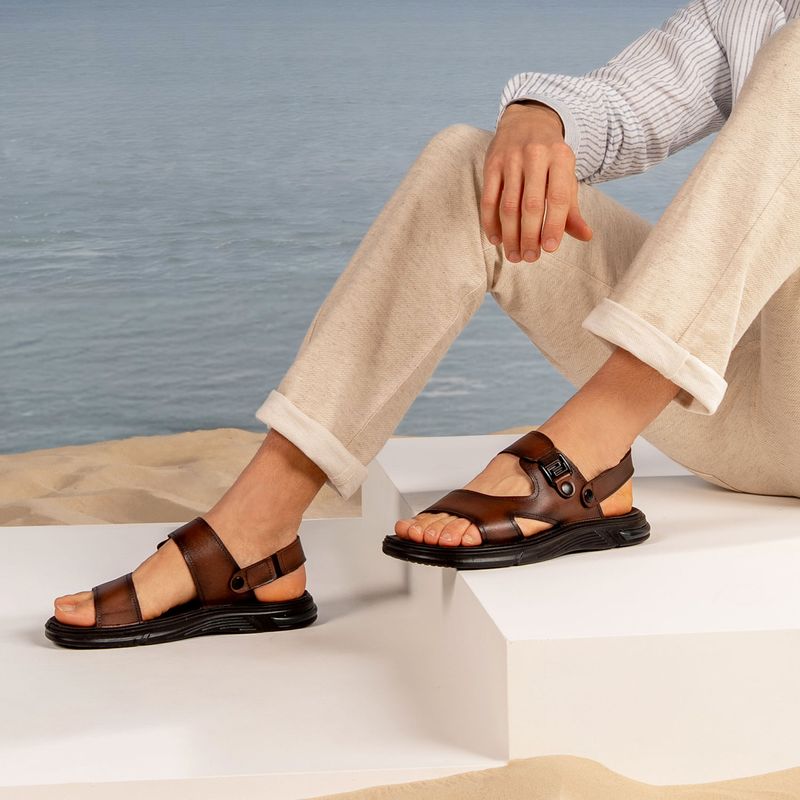 Sandália Pegada Masculino em Couro Pinhão 134401-01