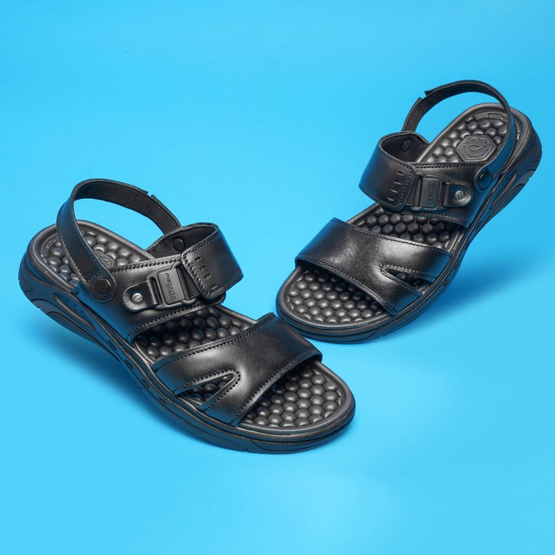 Sandália Pegada Masculino em Couro Preto 134553-03