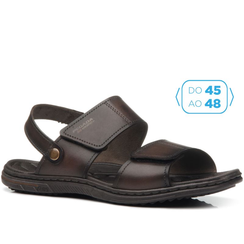 Sandália Pegada Masculino Plus Size em Couro Cravo 533303-02