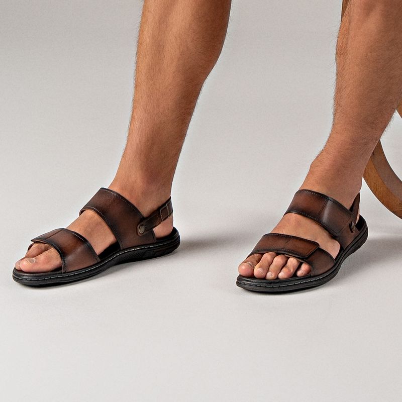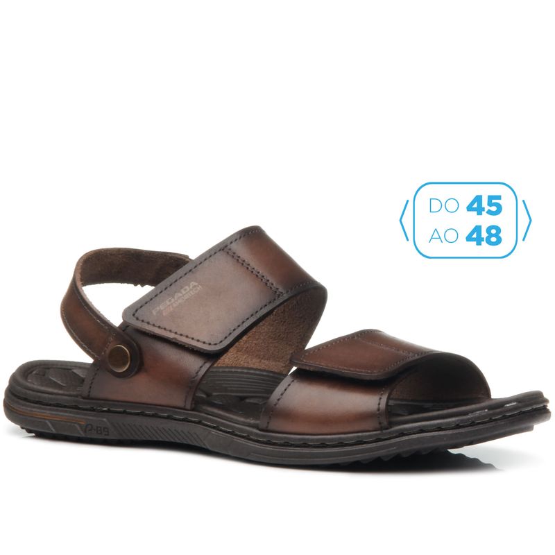 Sandália Pegada Masculino Plus Size em Couro Pinhão 533303-01