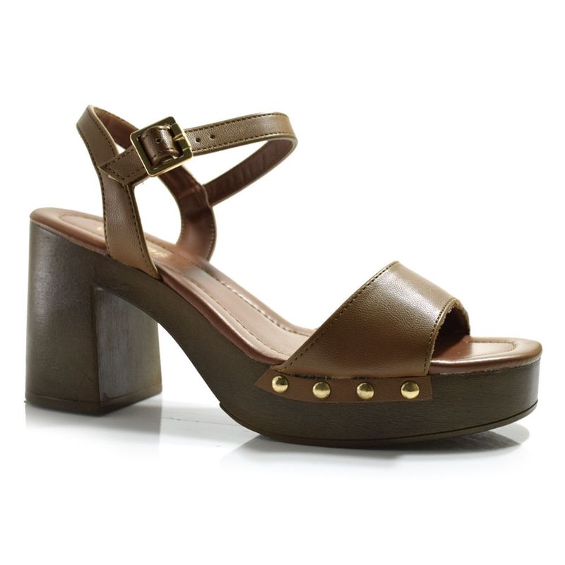 Sandália Plataforma Feminina Via Marte, confeccionada em material sintético com detalhes laterais metalizados e salto no estilo amadeirado. Essa sandália é moderna, confortável e super despojada. Ideal para compor looks cheios de estilo e proposta de moda. Salto: 8cm. Coleção: Primavera/Verão 2026. Aproveite e compre online. Ref: 311-006-01