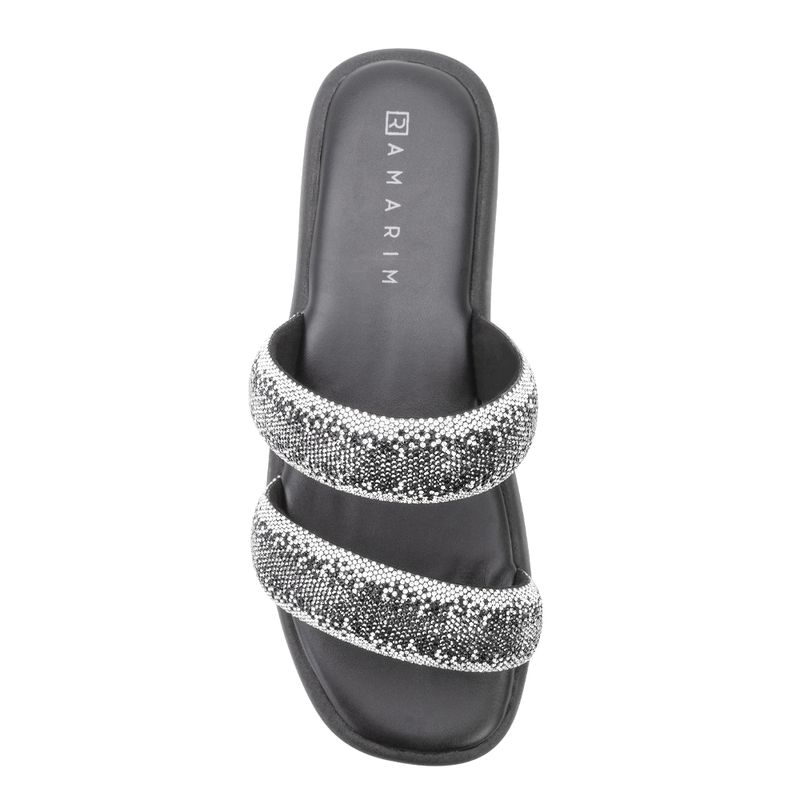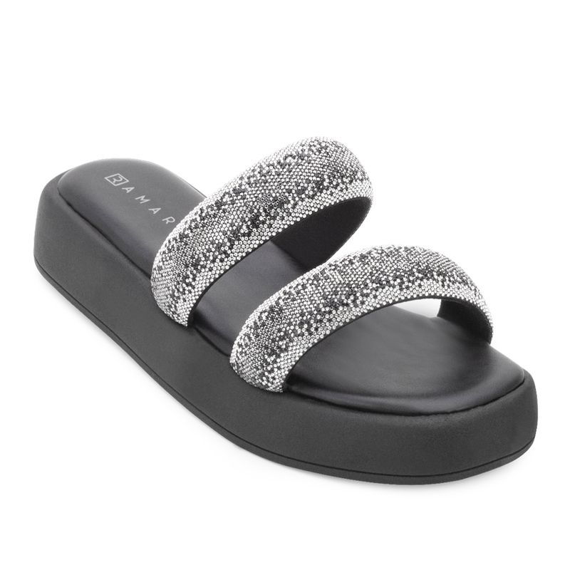 Chegou a Sandália Ramarim, um modelo que une conforto e estilo para você! Confeccionada em material alternativo de alta qualidade, possui duas tiras com aplicações de strass em degradê que adicionam um toque de delicadeza e elegância. A palmilha forrada e macia garante conforto em cada passo. Seu solado flatform de borracha antiderrapante proporciona segurança e estabilidade ao caminhar. Adquira já a sua!