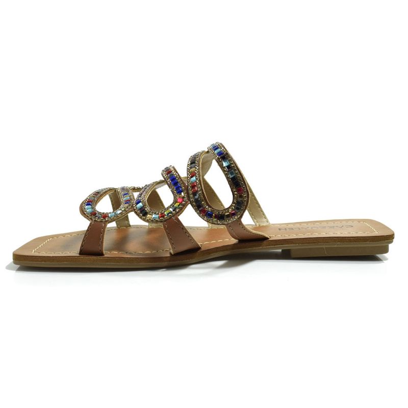 A Sandália Rasteira Feminina Cazzualen entrega tudo no brilho e na sofisticação da Rasteirinha Feminina, item indispensável para compor looks coloridos, modernos e cheios de charme. Seu design exclusivo apresenta tiras sinuosas decoradas com pedrarias multicoloridas nas cores azul, vermelho, dourado e outras tonalidades vibrantes, garantindo um visual marcante e elegante.