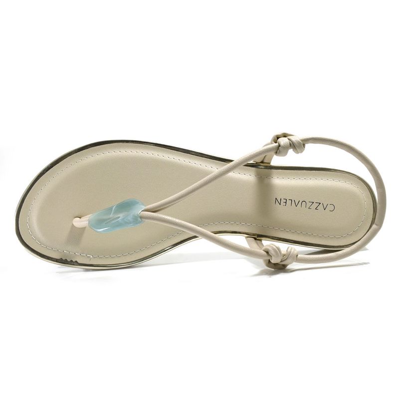 Sandália Rasteira Feminina Cazzualen, confeccionada em material sintético com fácil calce, detalhe sutil em pedraria, palmilha em EVA e solado de borracha. Essa sandália rasteira é delicada, moderna e versátil, ideal para looks fresquinhos de arrasar. Coleção: Primavera/Verão 2026. Aproveite e compre online. Ref: T1028-521