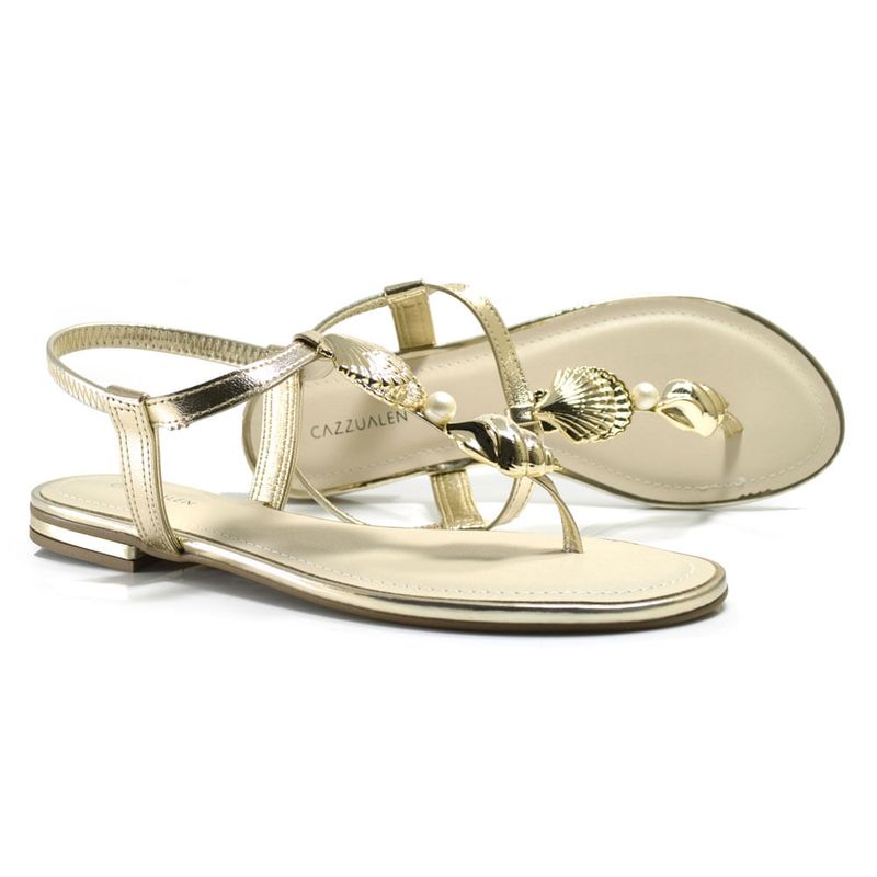 Sandália Rasteira Feminina Cazzualen, confeccionada em material sintético com fácil calce, detalhe sutil em aplicações metalizadas, palmilha em EVA e solado de borracha. Essa sandália rasteira é delicada, moderna e elegante, ideal para looks fresquinhos de arrasar, como passeios casuais, passeios ao ar livre, viagens, idas ao shopping, entre outros. Coleção: Primavera/Verão 2026. Aproveite e compre online. Ref: T1028-541