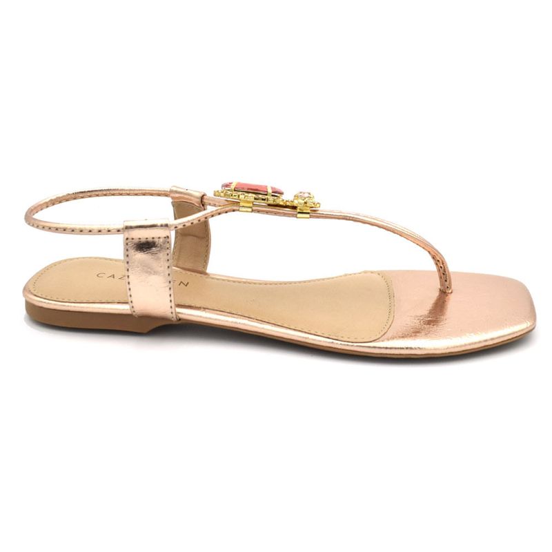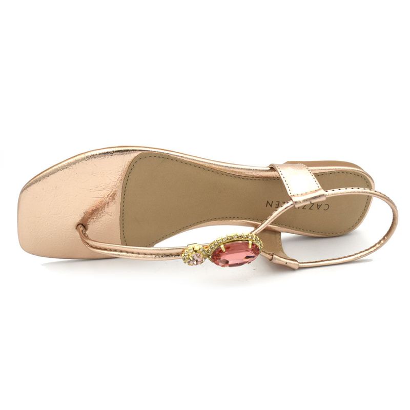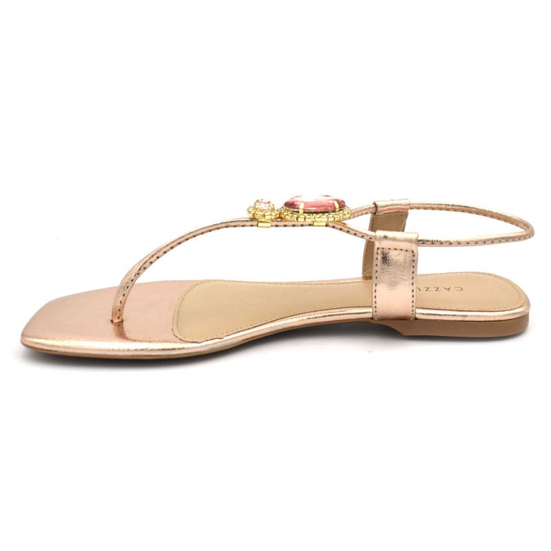 Sandália Rasteira Feminina Cazzualen, confeccionada em material sintético metalizado, fácil calce, detalhe em aplicação e solado de borracha. Essa sandália é moderna, versátil e despojada. Ideal para ocasiões que deseja arrasar, estando confortável. Coleção: Primavera/Verão 2026. Aproveite e compre online. Ref: 31438.