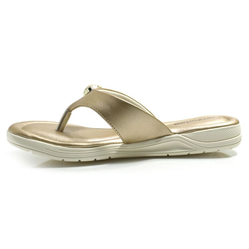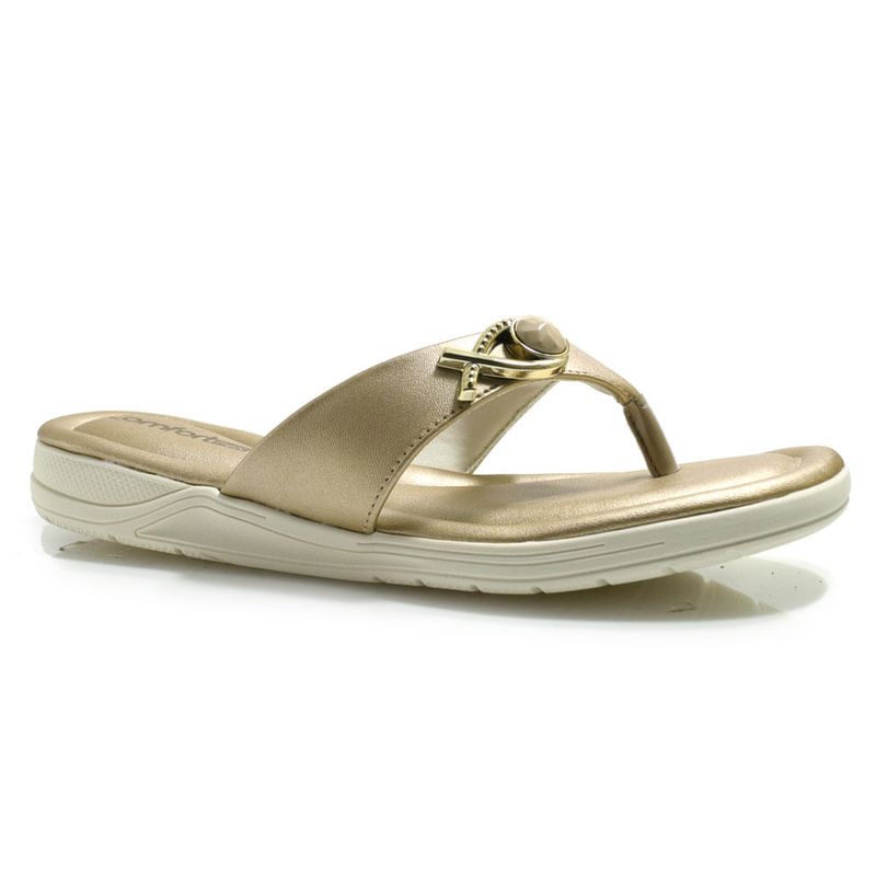 Sandália Rasteira Feminina Comfortflex, confeccionada em material sintético, palmilha acolchoada, solado de borracha e detalhe em aplicação metalizada, esse é um calçado ideal para quem busca leveza, praticidade e bem estar, se encaixando perfeitamente nos pés. Coleção: Atemporal. Aproveite e compre online. Ref: 2580401 MET