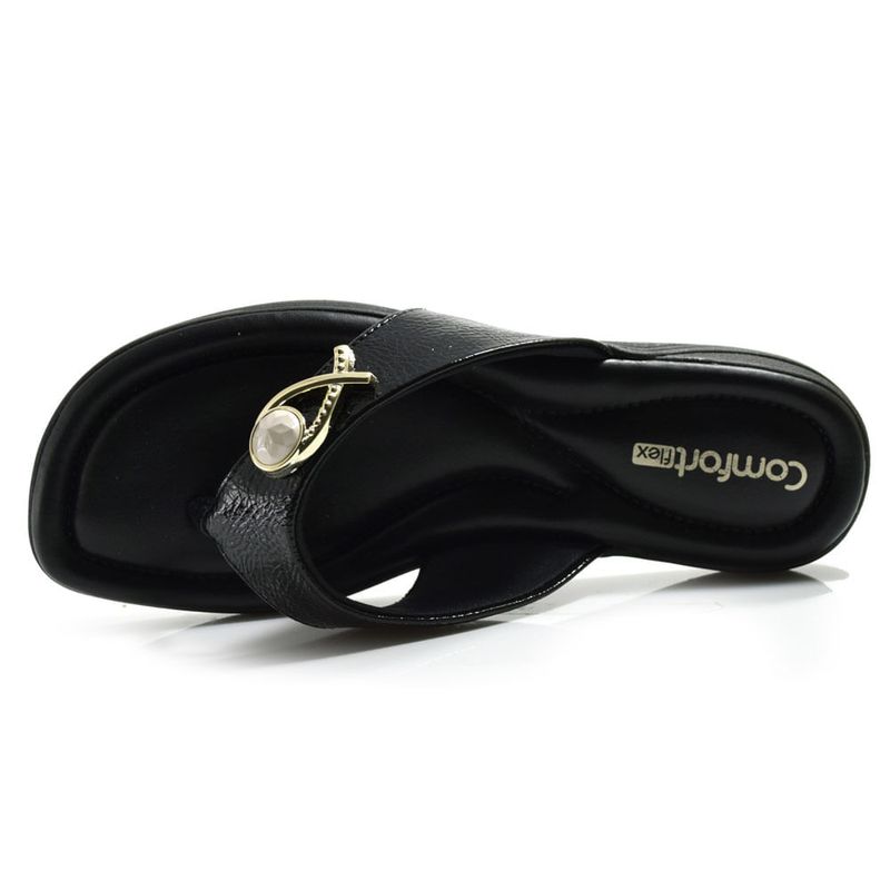Sandália Rasteira Feminina Comfortflex, confeccionada em material sintético, palmilha acolchoada, solado de borracha e detalhe em aplicação metalizada, esse é um calçado ideal para quem busca praticidade, conforto e bem estar, seja para ocasiões casuais ou dia a dia. Coleção: Atemporal. Aproveite e compre online. Ref: 2580401
