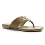 Sandália Rasteira Feminina Ramarim, confeccionada em material sintético com detalhes em aplicações de pedrarias e metais em tom dourado na parte superior , com palmilha acolchoada e solado emborrachado, ela pode ser usada com shorts jeans + blusas leves; vestidos soltinhos, entre outros. Sendo uma ótima opção para um look fresquinho e confortável. Coleção: Primavera/Verão 2026. Aproveite e compre online. Ref: 2525201.
