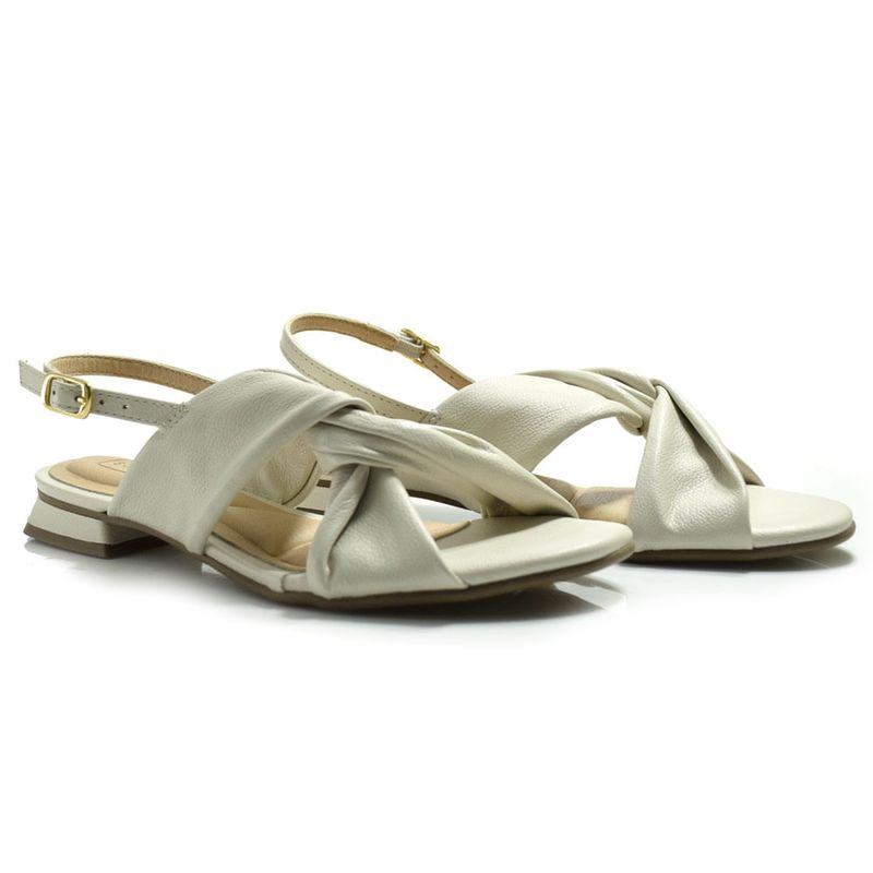 A Sandália Rasteira Feminina Suzzara é confeccionada em couro off-white e é o toque de elegância que o seu look precisa. O destaque fica por conta do nó frontal, que adiciona um ar sofisticado. Seu design de tiras largas garante conforto e segurança, enquanto o fechamento com fivela ajustável proporciona um encaixe perfeito. Ela é ideal para te acompanhar nos compromissos do dia a dia com leveza. Pode fazer parte de composições com saias fluidas, vestidos ou calças de linho para um visual fresco e contemporâneo.