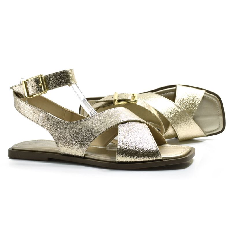 Sandália Rasteira Feminina Suzzara, confeccionada em material sintético metalizado, palmilha em TR e solado de borracha. Essa sandália é moderna, versátil e delicada. Ideal para looks cheios de estilo, conforto e personalidade. Coleção: Primavera/Verão 2026. Aproveite e compre online. Ref: 64.023.