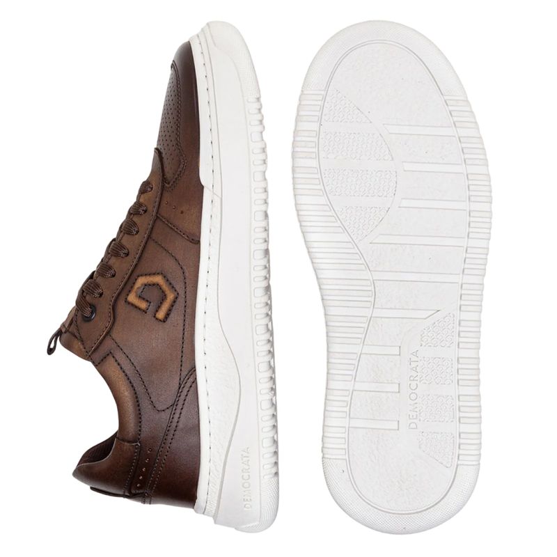 CodReferencia do Produto: 240501-010. Marca: Democrata. Modelo: tênis. Categoria: tênis. Estilo: Casual. Cor 1: Tabaco. Material: Couro. Acabamento: Tecido. Palmilha: PU. Solado: Borracha. Garantia: Contra Defeito de Fabricação. Origem: Fabricado no Brasil.