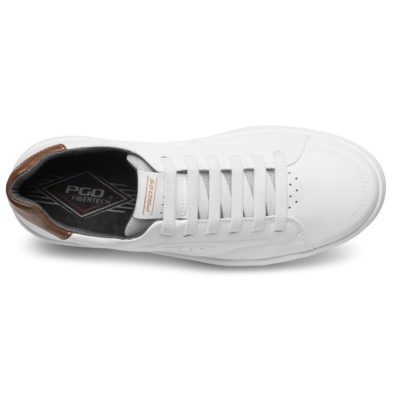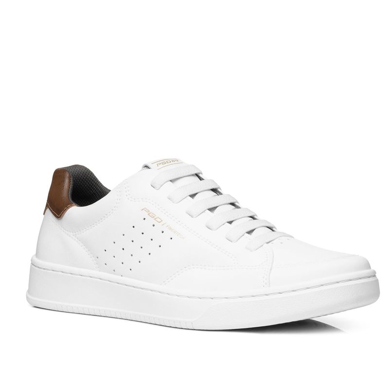 Esse sapatênis branco é feito com a microfibra especial da Pegada, PGD Fibertech: material tecnológico de alta flexibilidade, leveza e resistência, que é muito similar ao couro e de qualidade superior aos demais sintéticos. A durabilidade e a resistência desse material é tanta que a microfibra é apontada como uma das matérias primas mais apropriadas para produção de calçados de segurança.