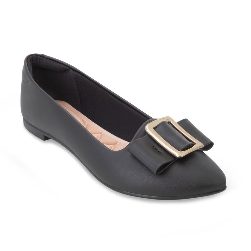 Exiba elegância e conforto com a Sapatilha Moleca! Com design moderno e bico afinado, essa sapatilha é confeccionada em material alternativo, trazendo um charme extra com o laço e detalhe dourado no cabedal. A palmilha anatômica e macia se ajusta perfeitamente aos seus pés, enquanto o solado de borracha antiderrapante oferece segurança em cada passo. Ideal para compor looks cheios de estilo em qualquer ocasião!