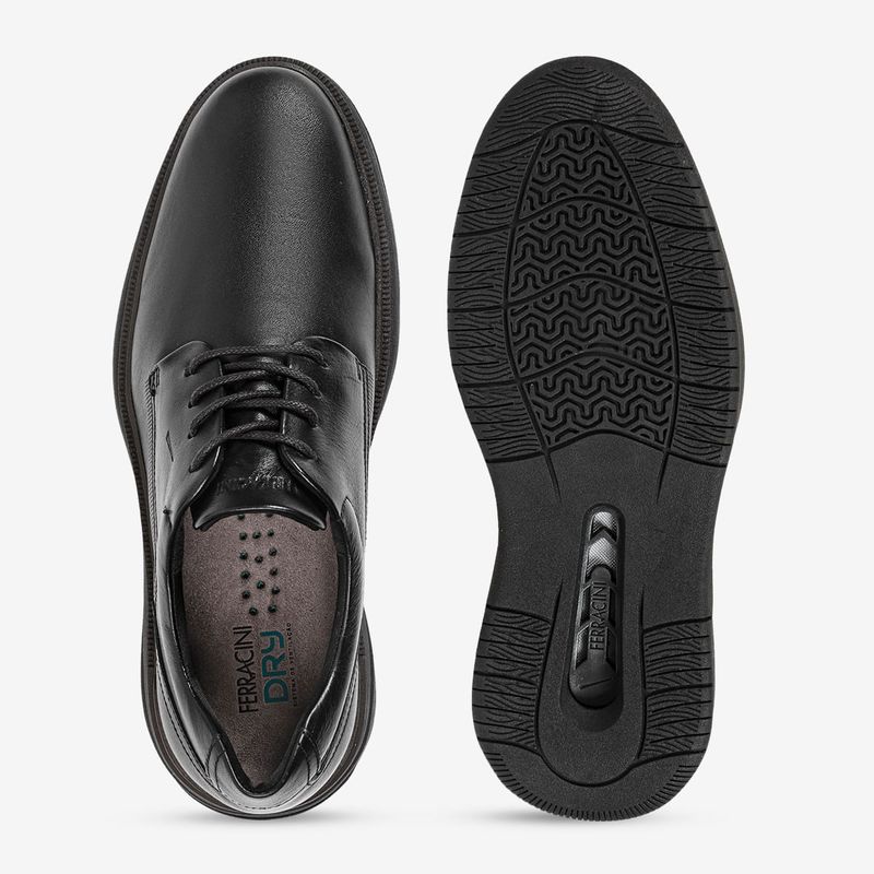 Sofisticação com praticidade. O sapato da Linha Modena é confeccionado em couro e possui design versátil, combinando facilmente com produções casuais e sociais. Seu solado em micro expandido com tecnologia Dry garante absorção de impacto e segurança ao caminhar, enquanto a palmilha em EVA oferece maior conforto para longos períodos de uso.