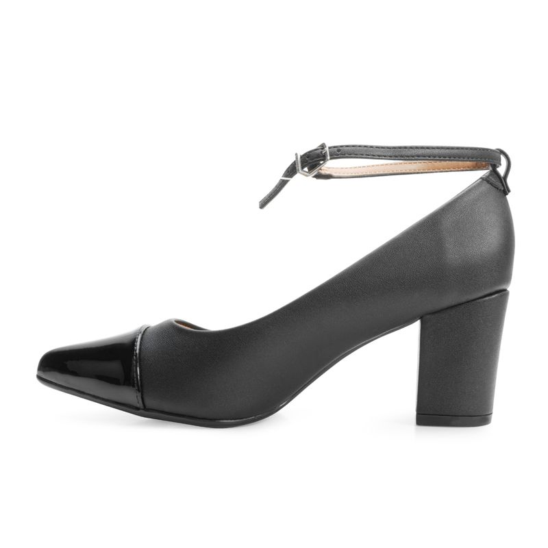 Material Externo: Alternativo com recorte e costura em verniz no bico.