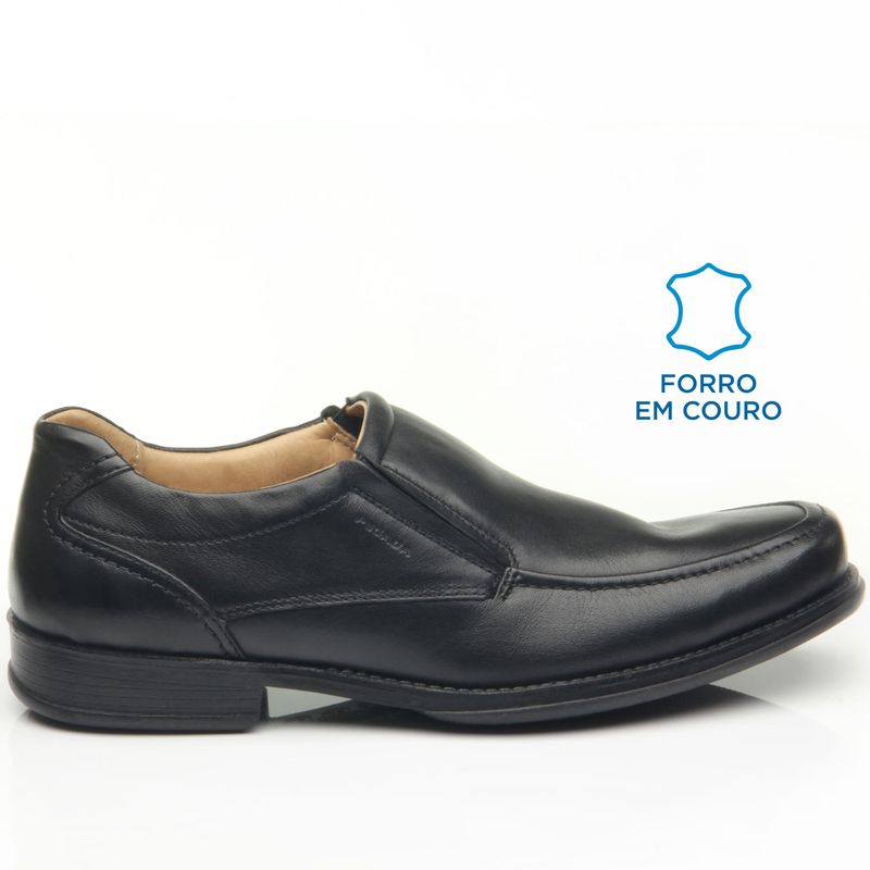 O cabedal, o forro e a palmilha são feitos em couro, o melhor material na fabricação de produtos de qualidade superior, que juntos, garantem extremo conforto. A palmilha ainda tem espuma ondulada e possui sistema AMORTECH em gel na região do calcanhar. O solado é em borracha gel ultraflexível. O modelo possui elástico em ambos os lados, conferindo alta praticidade “Calce Fácil”.