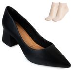 Nome: Scarpin Salto Bloco Bebecê e Meia BC23-T3821084. Gênero: Feminino. Indicado Para: Moda-Eventos. Estilo da Peça: Social. Ocasião: Moda-Festa. Material Externo: Alternativo de bico fino. Material Interno: Têxtil. Palmilha: PU (pulieretano), macia. Solado: Borracha com ranhuras. Tipo de Salto: Médio, bloco. Altura do Salto: 5,5 cm. Peso do Produto: 814 g (o peso varia de acordo com a numeração). Garantia do Fabricante: Contra defeito de fabricação. Origem: Nacional. Código Produto: 02012468. Marca: Bebecê. Acompanha um par de meias fina tamanho único. Composição: 85 % Poliamida. 15 % Elastano.