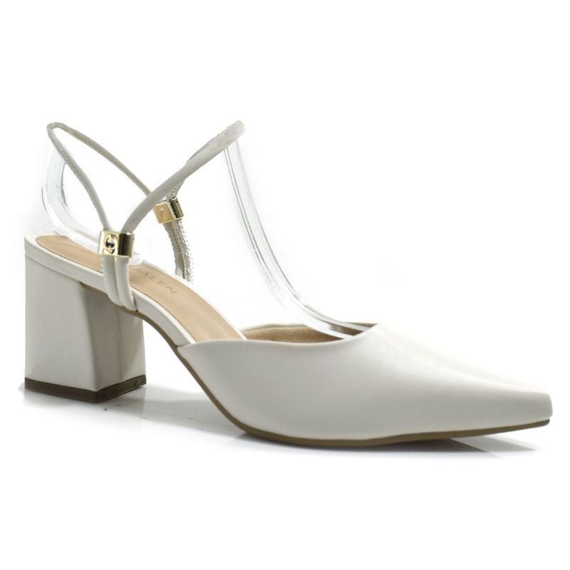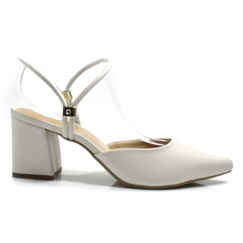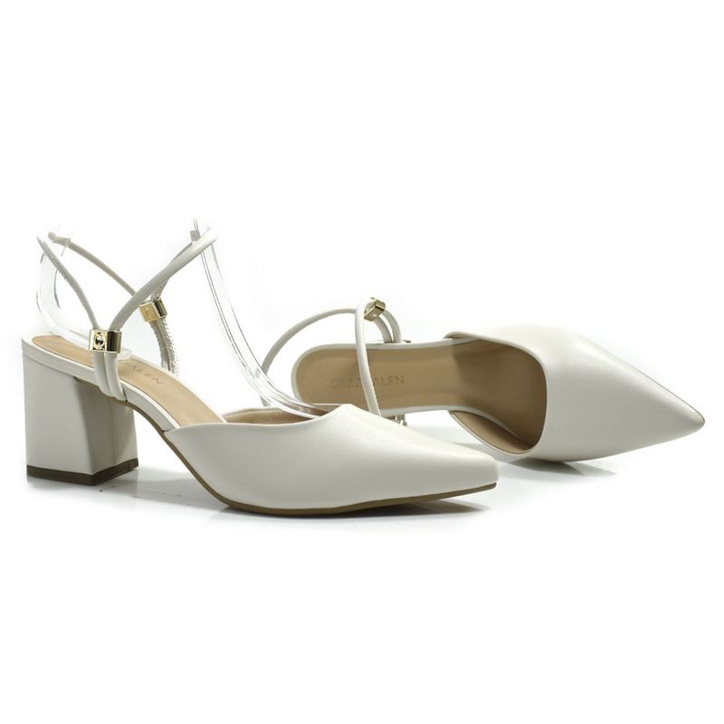 Scarpin Slingback de Salto Bloco Cazzualen Off White 1204