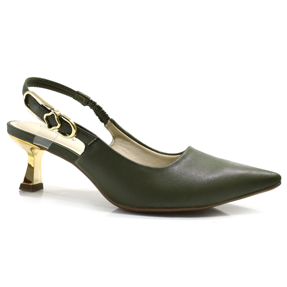 Scarpin Slingback Feminino Cazzualen, confeccionado em material sintético com detalhe em aplicação metalizada no salto e na lateral, transparência na lateral e fácil calce. Esse scarpin é moderno e ideal para compor looks cheios de emponderamento. Salto: 6cm. Coleção: Outono/Inverno 2025. Aproveite e compre online. Ref: T3814-335.