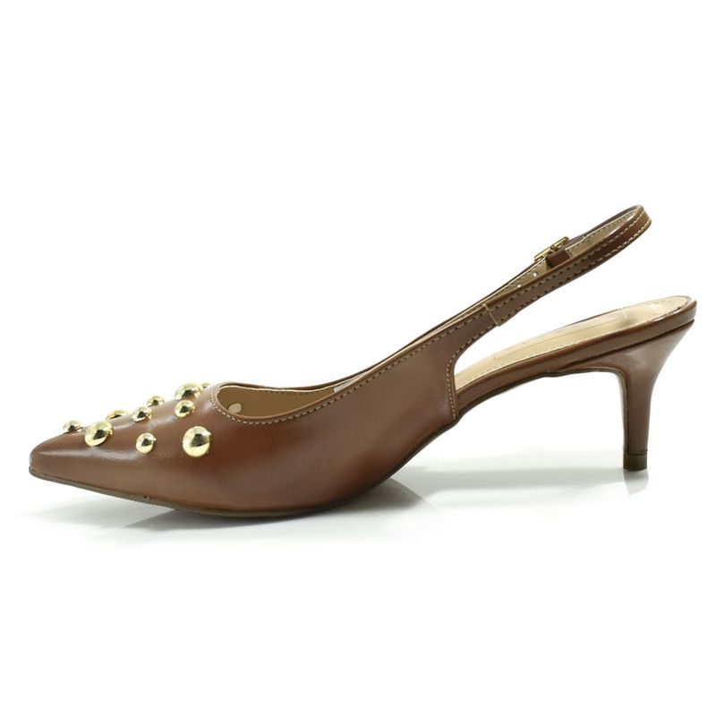 Scarpin Slingback Feminino Suzzara, confeccionado em material sintético, palmilha de TR e solado de PU, com aplicações metalizadas e salto de 6cm.Esse scarpin é elegante, moderno e chique. Ideal para compor looks cheios de proposta de moda e estilo. Coleção: Outono/Inverno 2025. Aproveite e compre online. Ref: 15601-14.