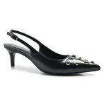 Scarpin Slingback Feminino Suzzara, confeccionado em material sintético, palmilha de TR e solado de PU, com aplicações metalizadas e salto de 6cm.Esse scarpin é elegante, moderno e chique. Ideal para compor looks cheios de proposta de moda e estilo. Coleção: Outono/Inverno 2025. Aproveite e compre online. Ref: 15601-14.