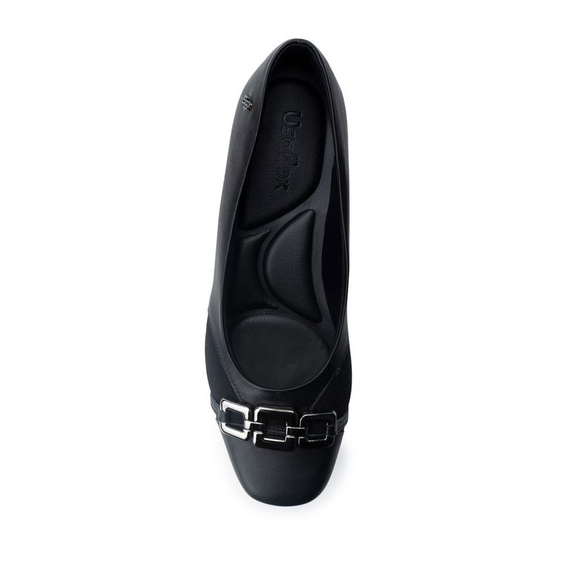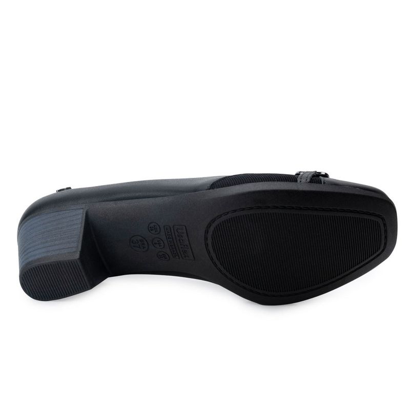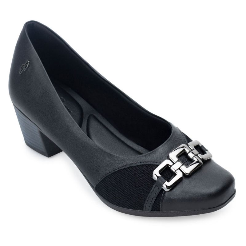O Scarpin Usaflex de salto em bloco. Material alternativo com enfeite. o modelo possui tecnologia joanetes e memória permanente, que alivia o desconforto da região, garantindo suavidade na pisada por usufruir de materiais moldáveis nos pés e palmilha com capacidade de retorno, com característica extra macia que garante conforto e sensação de bem-estar por mias tempo. Adquira o seu!