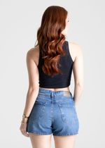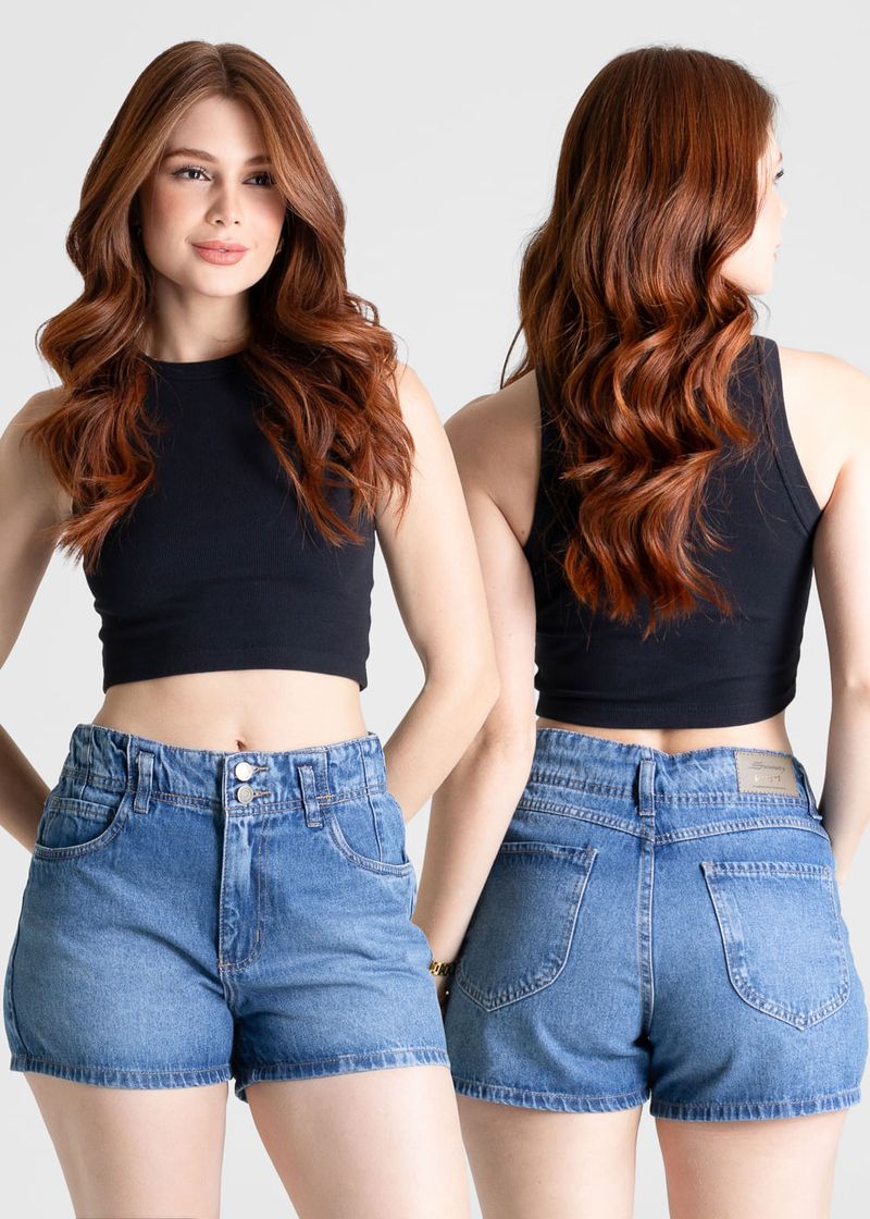 Shorts confeccionada em jeans. Modelagem soltinho. Cintura média Fechamento com botão e zíper Bolsos frontais e bolsos traseiros funcionais bolsos laterais cargo Barra dobrada Tecido: Jeans Tipo de lavagem: Azul Cor: Azul