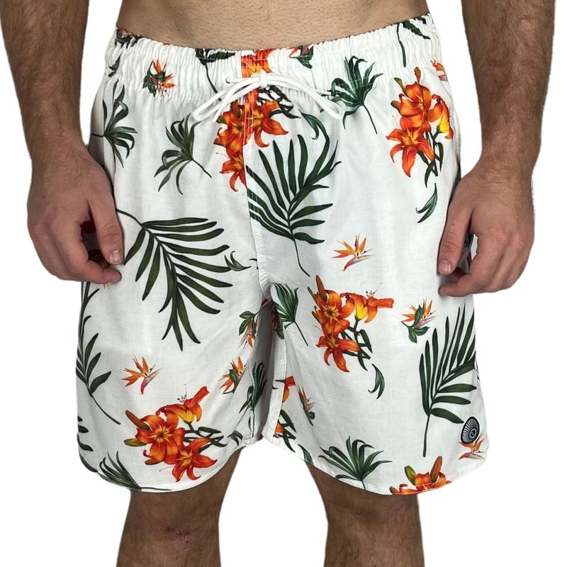 Shorts Surf Trip Floral Branco
