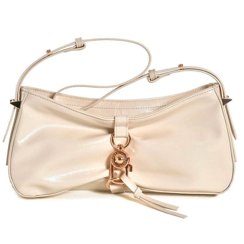 Shoulder Bag Feminina Via Marte, confeccionada em PU com textura envernizada, fechamento em zíper e botão magnético, amplo espaço interno forrado e bolso interno. Medidas aproximadas: largura: 30cm, altura: 14,5cm e profundidade: 4cm. Coleção: Atemporal. Aproveite e compre online. Ref: B1-302-01.