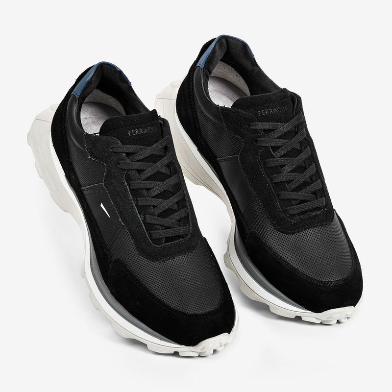 O sneaker Ferracini Mid preto traduz modernidade e atitude em um calçado versátil. Confeccionado em couro e camurça, apresenta design urbano com acabamento sofisticado. Seu solado tratorado em micro expandido oferece estabilidade e estilo, enquanto a palmilha em PU com forro têxtil garante conforto extra. Um tênis masculino casual que vai bem tanto em combinações clássicas quanto em produções mais ousadas, acompanhando o ritmo acelerado da cidade.