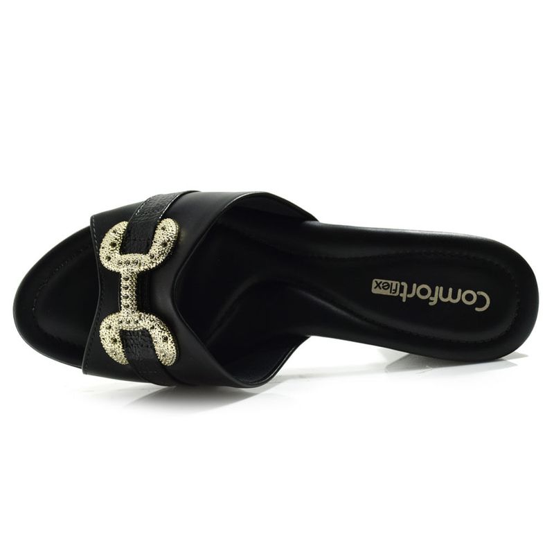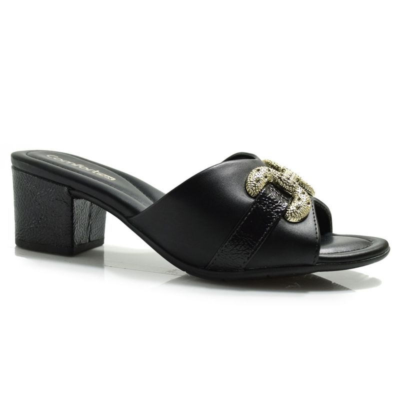 Tamanco de Salto Bloco Feminino Comfortflex, confeccionado em material sintético, palmilha em EVA acolchoada, solado de borracha antiderrapante e detalhe metalizado no cabedal. Um calçado que une estilo e conforto em todos os momentos, ideal para quem busca praticidade no dia a dia, sem deixar de estar elegante. Salto: 6cm. Coleção: Atemporal. Aproveite e compre online. Ref: 2557401