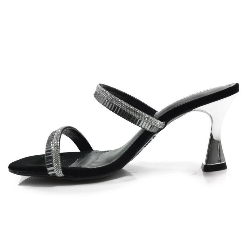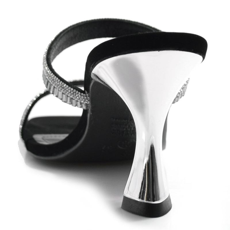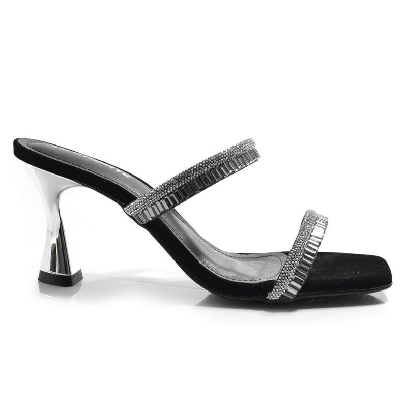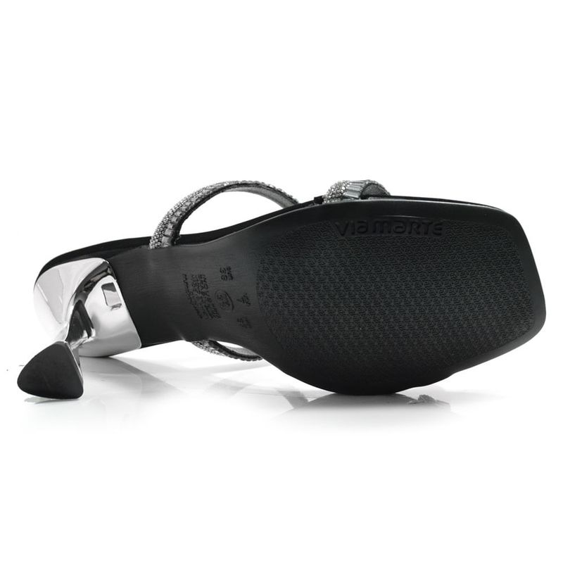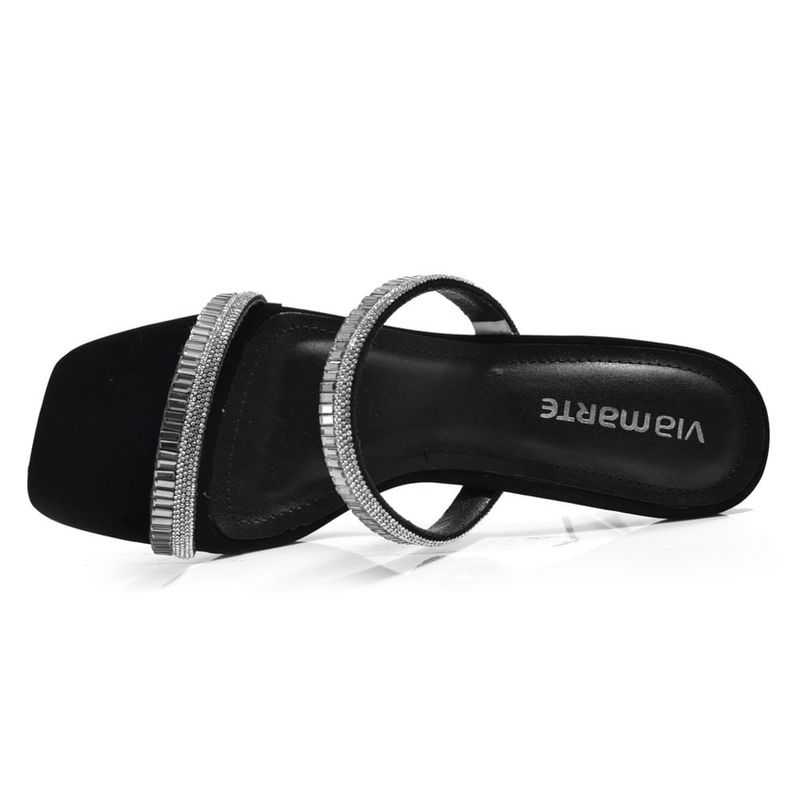 Tamanco de Salto Feminino Via Marte, confeccionado em material sintético, detalhes em strass, salto metalizado, palmilha em EVA e solado de borracha. Esse tamanco é elegante, moderno e ideal para arrasar em ocasiões sociais ou formais. Salto: 7cm. Coleção: Primavera/Verão 2026. Aproveite e compre online. Ref: 166-026-02