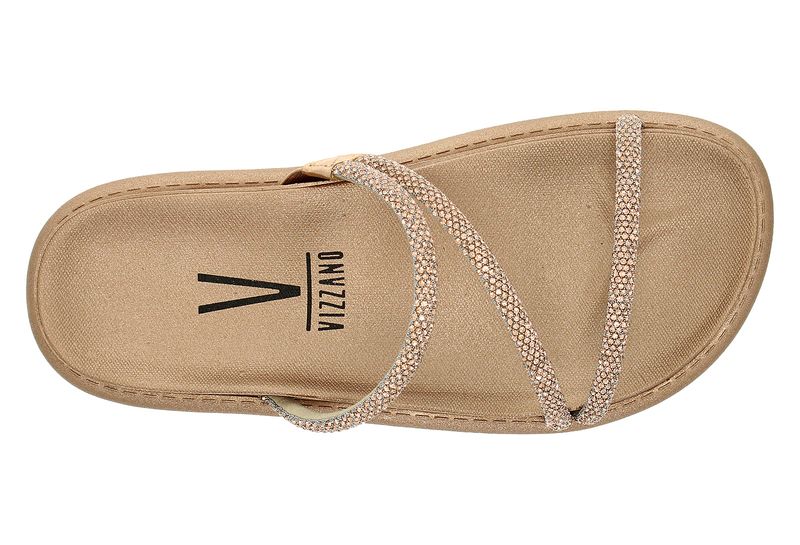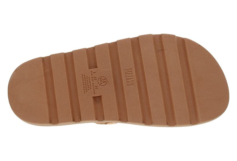 O tamanco flatform Vizzano ouro rosado é um calçado feminino com solado flatform, na cor ouro rosado, ideal para compor looks modernos e estilosos.