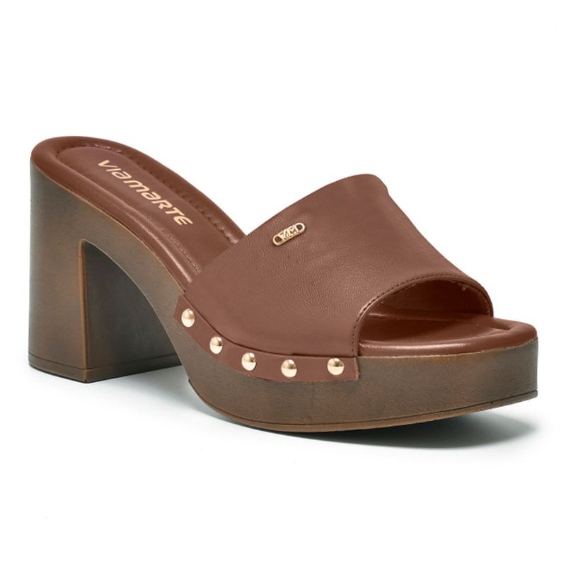 Tamanco Plataforma Feminino Via Marte, confeccionado em material sintético com detalhes sutis em aplicações metalizadas, fácil calce, palmilha em EVA e solado de borracha. O tamanco é um calçado elegante, prático e versátil. Cheio de proposta de moda, ele pode ser usado em ocasiões casuais ou dia a dia. Salto: 9cm. Coleção: Primavera/Verão 2026. Aproveite e compre online. Ref: 311-002-01