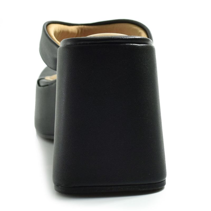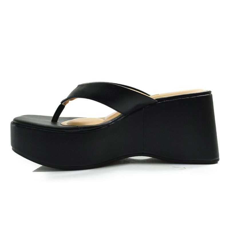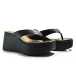 Seu formato de plataforma alonga a silhueta sem abrir mão da estabilidade, enquanto as tiras largas do cabedal garantem um calce confortável e envolvente. A palmilha oferece uma sensação de apoio e leveza a cada passo.