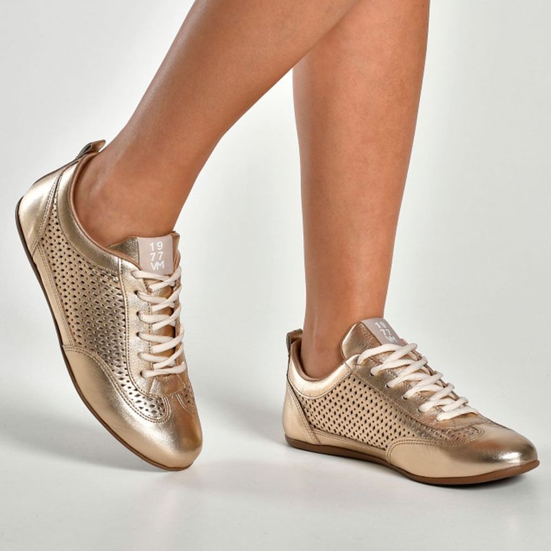 Tênis Casual Feminino Via Marte, confeccionado em material sintético metalizado com detalhes em corte a laser, amarração em cadarço, palmilha em EVA e solado de borracha. Esse tênis é despojado, versátil e moderno, ideal para looks cheios de proposta da moda e estilo. Coleção: Atemporal. Aproveite e compre online. Ref: 309-001-01