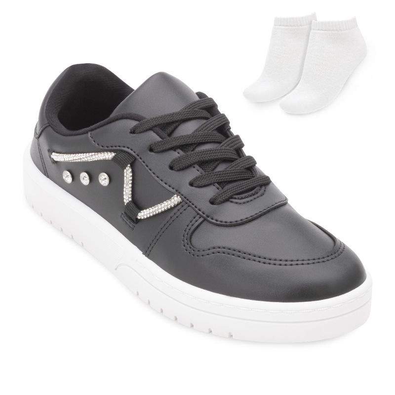 Brilhe em cada passo com o Tênis Moleca! Confeccionado em material alternativo de alta qualidade, esse tênis se destaca com uma elegante tira de brilhos e aplicações de strass na lateral, adicionando um toque glamoroso ao seu visual. O forro interno em material têxtil macio e o fechamento por cadarço garantem conforto e ajuste perfeito. Com palmilha forrada e macia, e solado de borracha antiderrapante, você terá estilo e segurança em todos os momentos. Perfeito para quem ama um toque de brilho no dia a dia!