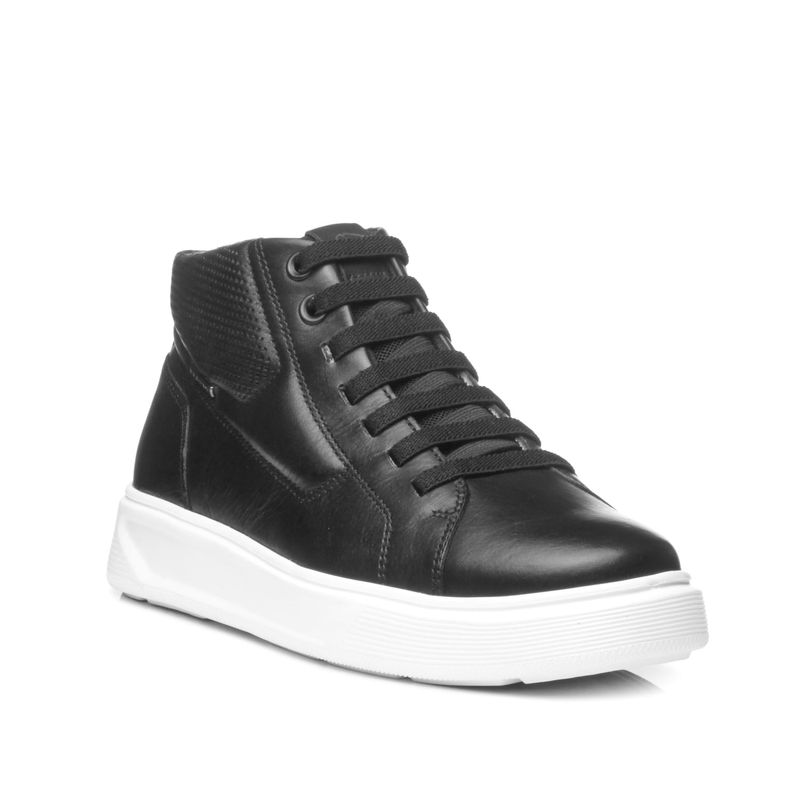 Esse tênis em couro preto estilo botinha é super confortável e estiloso. Onde for vá leve, essa é a sensação que queremos passar na linha Levi, pois o solado é feito em Eva, com a nossa Tecnologia LEVITECH, pesando menos de 250 gr por pé, proporcionando muita leveza. Isso significa momentos de conforto extremo a qualquer hora. E não acaba por ai, o modelo ainda possui o nosso sistema "FAST PIN", que é um cadarço elástico com uma ponteira em metal que permite o ajuste sem a necessidade de amarrar, trazendo muita praticidade na hora de calçar. Feito para o dia a dia do homem moderno, esse tênis é versátil, combina com diferentes propostas de looks e acompanha você desde o escritório até a viagem de fim de semana.