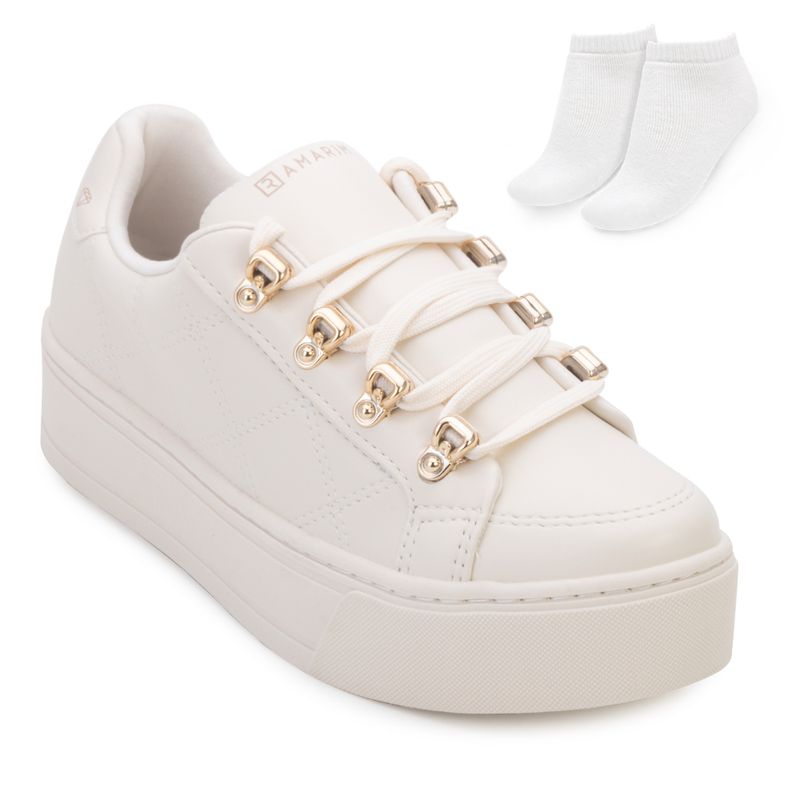 O Tênis Casual Feminino Ramarim é a escolha perfeita para quem não abre mão de estilo e conforto. Confeccionado em material alternativo de alta qualidade, ele conta com detalhes sofisticados de costuras no cabedal que dão um toque de elegância ao modelo. Os passantes de cadarço dourados acrescentam um charme extra e um brilho especial ao visual. Sua palmilha forrada e macia garante o conforto ideal para o seu dia a dia, enquanto o solado de 4 centímetros, com tecnologia antiderrapante, proporciona segurança e estabilidade a cada passo. Um tênis versátil, perfeito para você que busca praticidade e sofisticação em um único produto!
