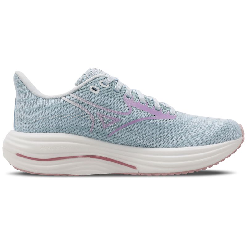 "Inspirado no movimento fluido das ondas, o novo visual transmite velocidade e leveza desde o primeiro olhar. A inovadora placa Wave e a aplicação de PU no cabedal acompanham o fluxo natural da pisada, do calcanhar até os dedos, garantindo transições suaves e uma corrida com mais impulso e dinamismo. Buscando a “simplicidade técnica”, cada detalhe do cabedal foi pensado para ter uma função. O tradicional logo RB volta a desempenhar um papel fundamental: agora conectado aos ilhós, ele reforça a estrutura do tênis e ajuda a manter o pé firme e bem posicionado durante toda a corrida. E para dar um toque de novidade, o Wave Rider estreia uma nova versão do logo, combinando tecnologia com um visual renovado e ainda mais marcante, tudo isso impulsionado pela entressola Mizuno Enerzy NXT com infusão de nitrogênio, que entrega amortecimento máximo com leveza e resposta incomparáveis."