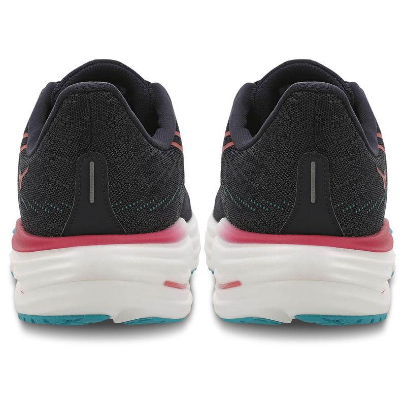 "Inspirado no movimento fluido das ondas, o novo visual transmite velocidade e leveza desde o primeiro olhar. A inovadora placa Wave e a aplicação de PU no cabedal acompanham o fluxo natural da pisada, do calcanhar até os dedos, garantindo transições suaves e uma corrida com mais impulso e dinamismo. Buscando a “simplicidade técnica”, cada detalhe do cabedal foi pensado para ter uma função. O tradicional logo RB volta a desempenhar um papel fundamental: agora conectado aos ilhós, ele reforça a estrutura do tênis e ajuda a manter o pé firme e bem posicionado durante toda a corrida. E para dar um toque de novidade, o Wave Rider estreia uma nova versão do logo, combinando tecnologia com um visual renovado e ainda mais marcante, tudo isso impulsionado pela entressola Mizuno Enerzy NXT com infusão de nitrogênio, que entrega amortecimento máximo com leveza e resposta incomparáveis."