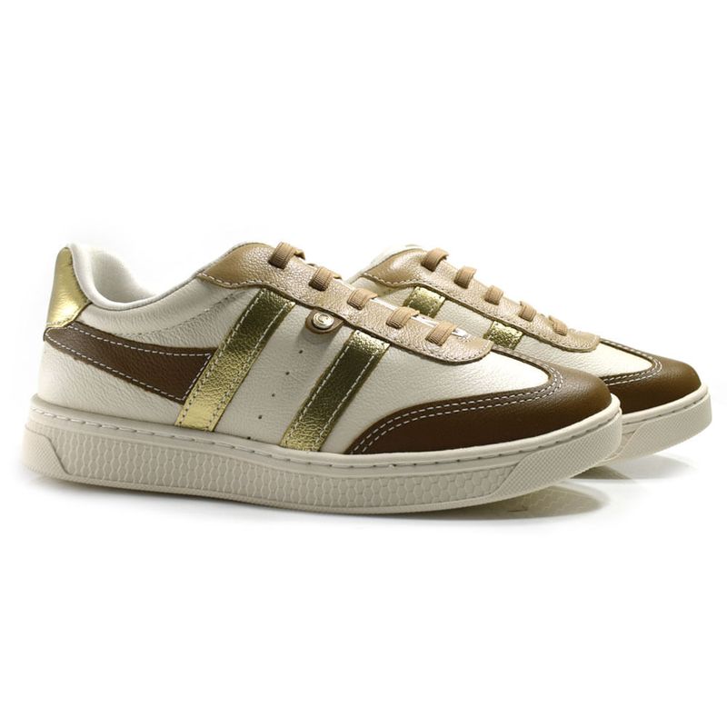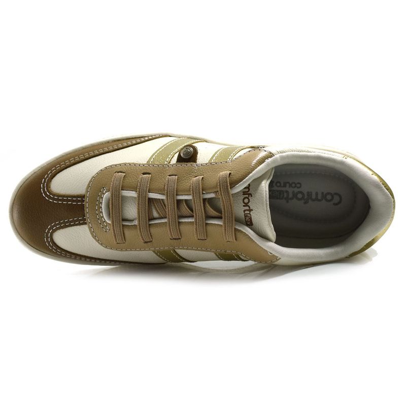 Tênis de Couro Feminino Comfortflex Bege 2565302