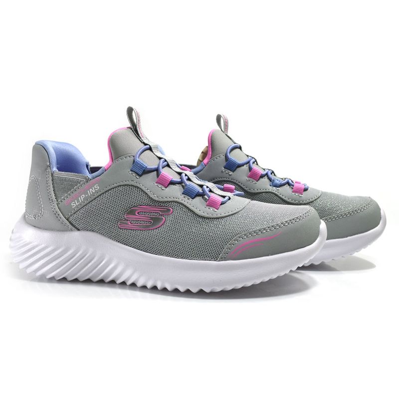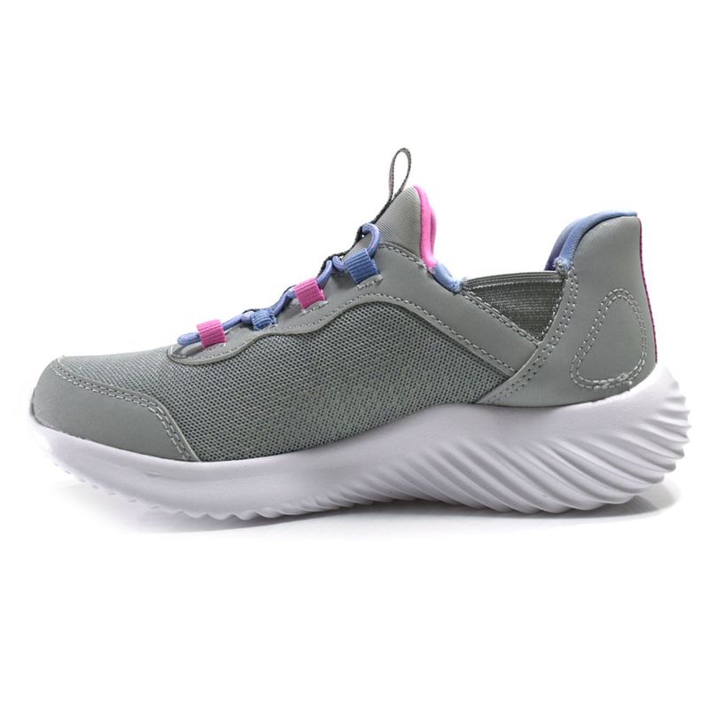 O Tênis Infantil Feminino Skechers Bounder é sinônimo de praticidade e conforto aliados ao estilo; um tênis desenvolvido para quem busca funcionalidade. Seu design moderno em cinza com detalhes em rosa e lilás garante um visual leve e delicado, perfeito para caminhadas, academia ou uso diário.