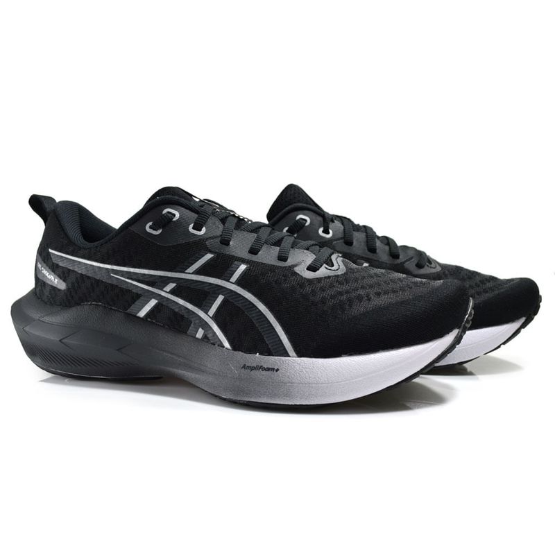 O cabedal é construído em mesh respirável na cor preta, garantindo máxima ventilação e o cadarço um ajuste preciso ao pé. O design icônico e aerodinâmico da marca é destacado pelas linhas que reforçam o visual de movimento e estilo moderno.