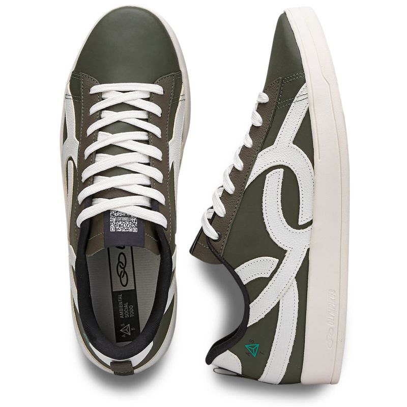 Reforçando o compromisso da Olympikus com a sustentabilidade, o modelo Eternal também integra a categoria casual com um modelo clássico, moderno e sustentável. O seu solado é feito em material caixa de borracha de origem sustentável para melhor aderência. Seu cabedal é confeccionado em sintético Coverline Eco e proporciona conforto e durabilidade. Conta ainda com peças do logotipo Olympikus em camurça biobase costuradas que modernizam o estilo retrô clássico e aplicação gráfica à base d’água do Selo Sustentável. Possui ainda forro em tecido poliéster reciclado com espuma sustentável, lingueta em sintético Coverline com etiqueta de fio pet reciclado, puxador em fita e atacador no mesmo material. Sua palmilha é anatômica, composta por resíduos da empresa Vulcabrás e tecido poliéster reciclado com aplicação gráfica à base d’água. Conta ainda com QR Code que colabora com a sustentabilidade, diminuindo a quantidade de material informativo sobre o tênis.